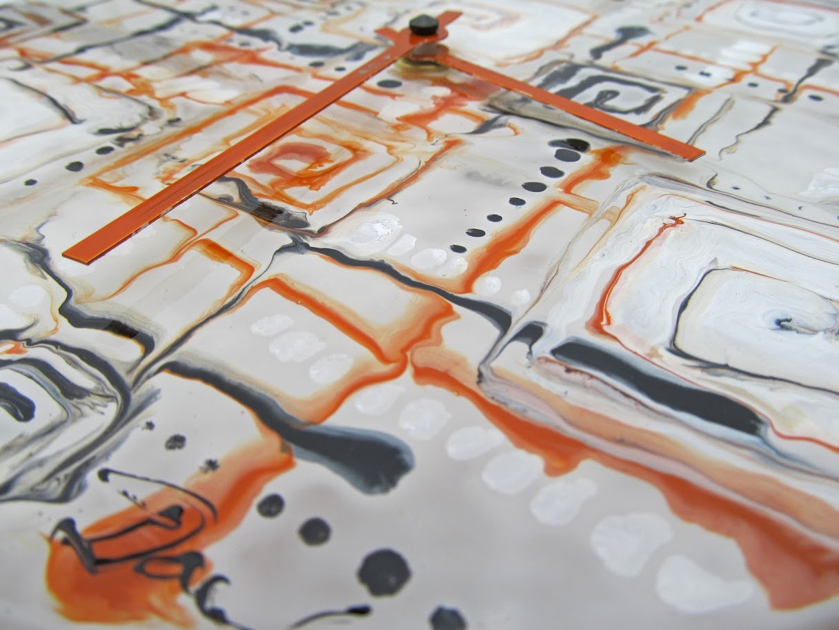 Dopřejte svému interiéru solitér, který nikdo nepřehlédne. Tyto skleněné hodiny o průměru 25 cm nejsou jen ukazatelem času, ale ručně malovaným obrazem. Kombinace energické oranžové, hluboké černé a jemných krémových tónů vytváří dynamickou hru spirál a linií, která do prostoru vnese moderní rytmus.