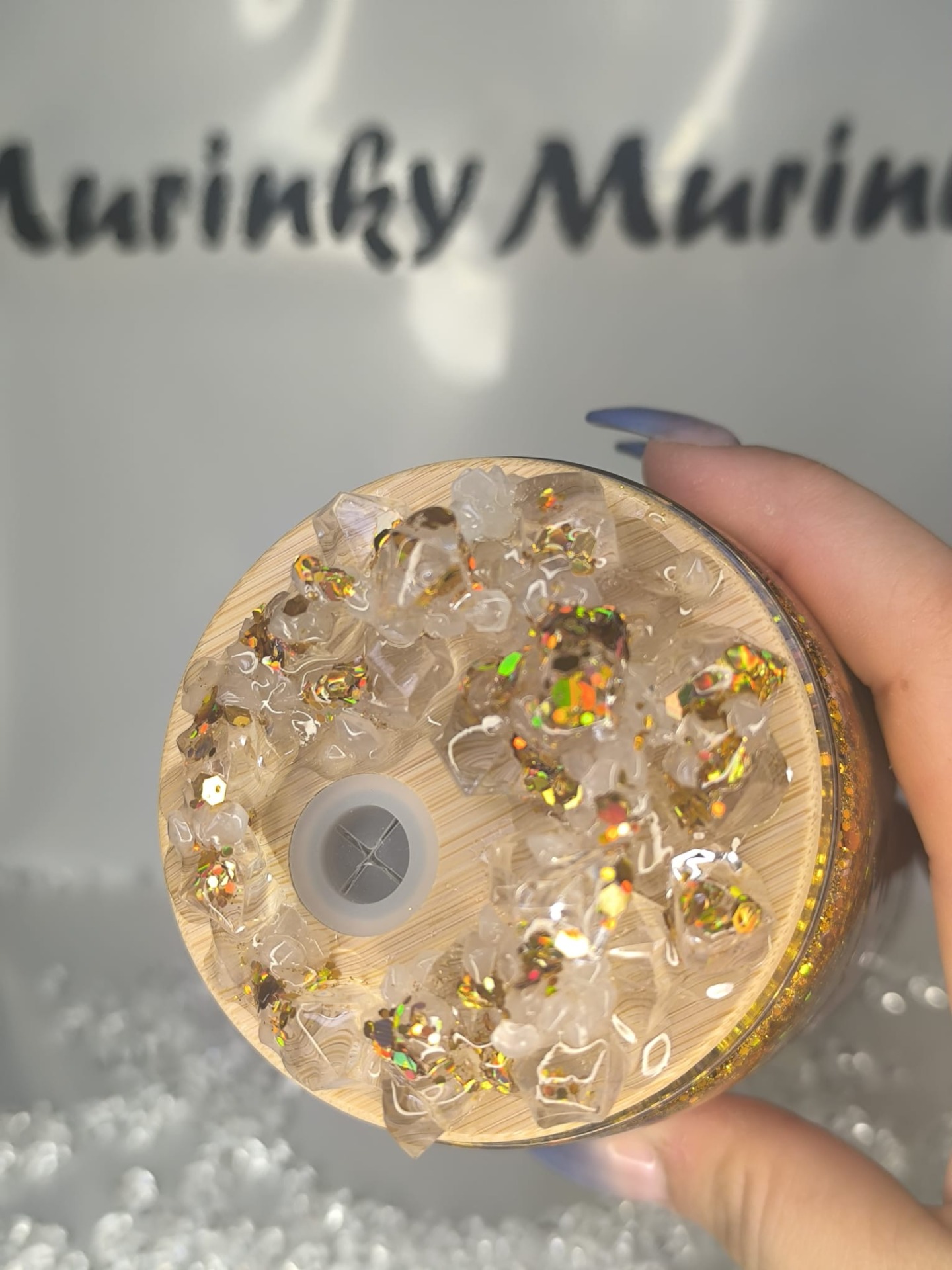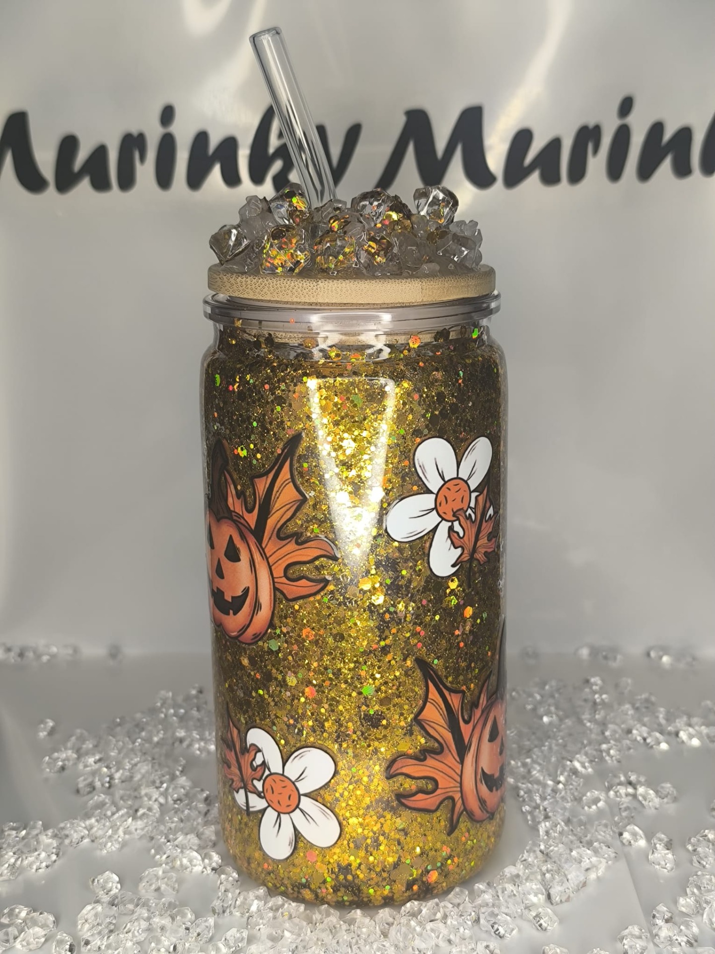 Plastová sklenice s dvojitou stěnou, plněné třpytky a zdobené ,,ledem"