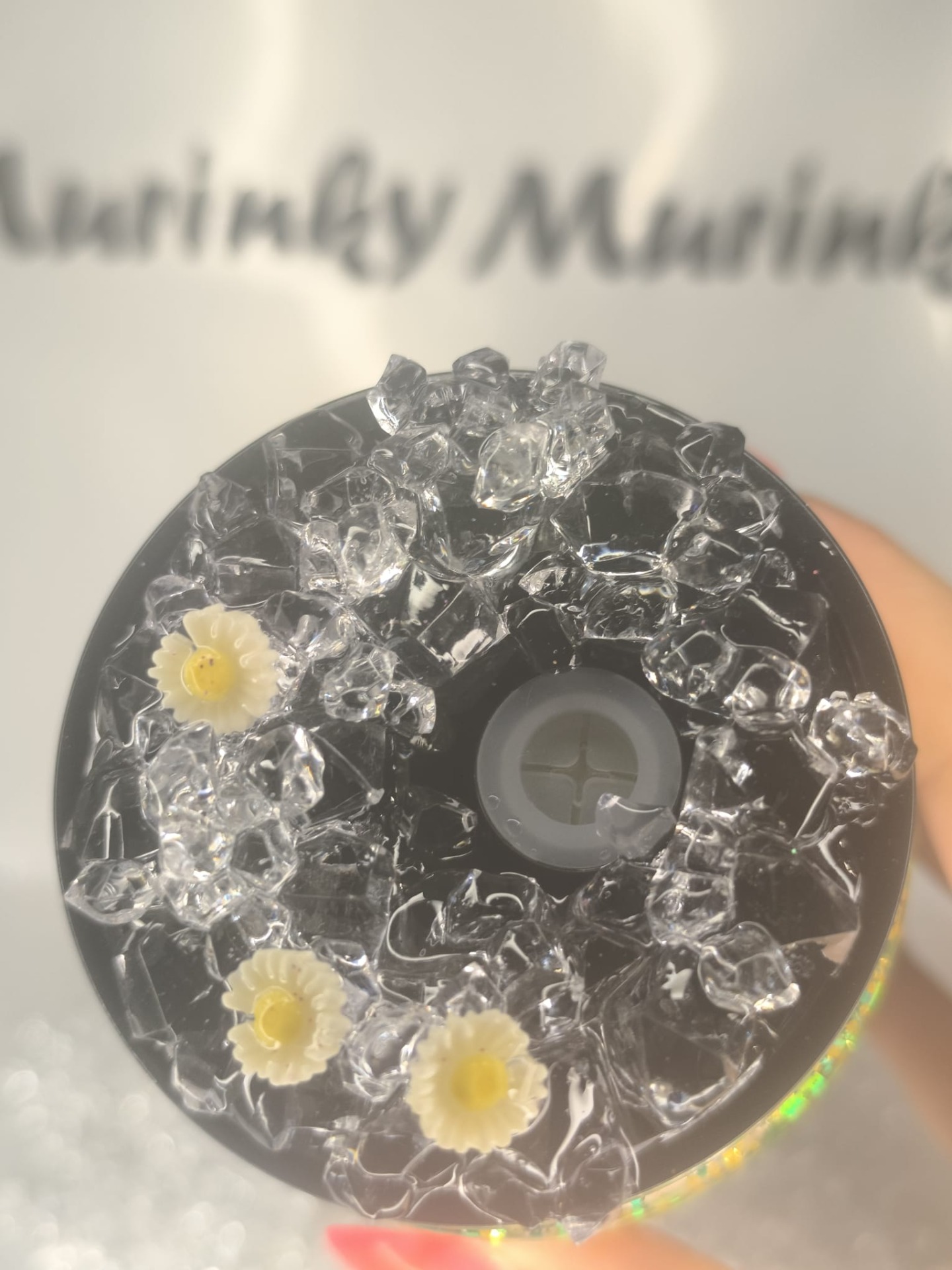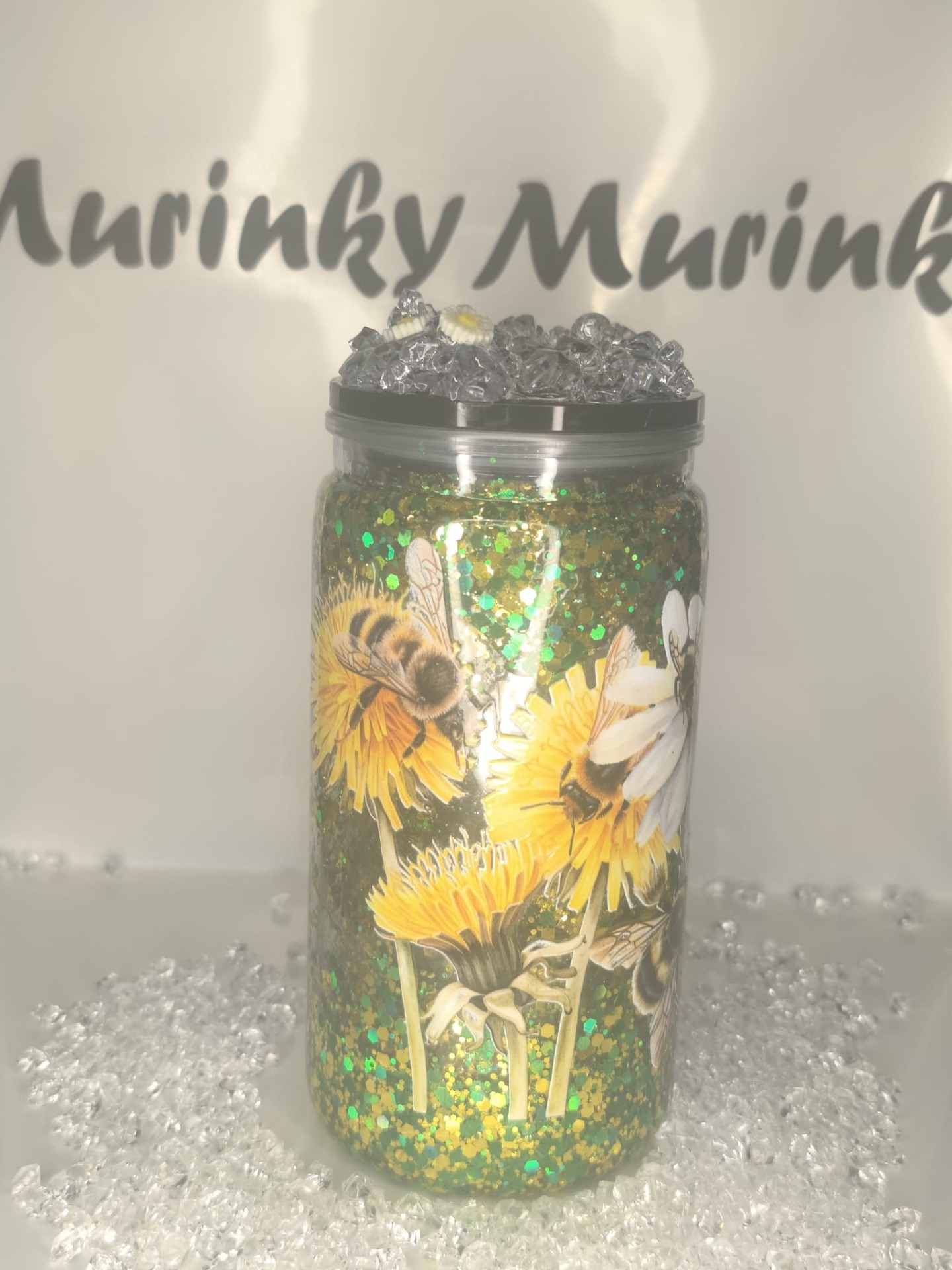 Plastové sklenice s dvojitou stěnou, plněné třpytky a zdobené ,,ledem"