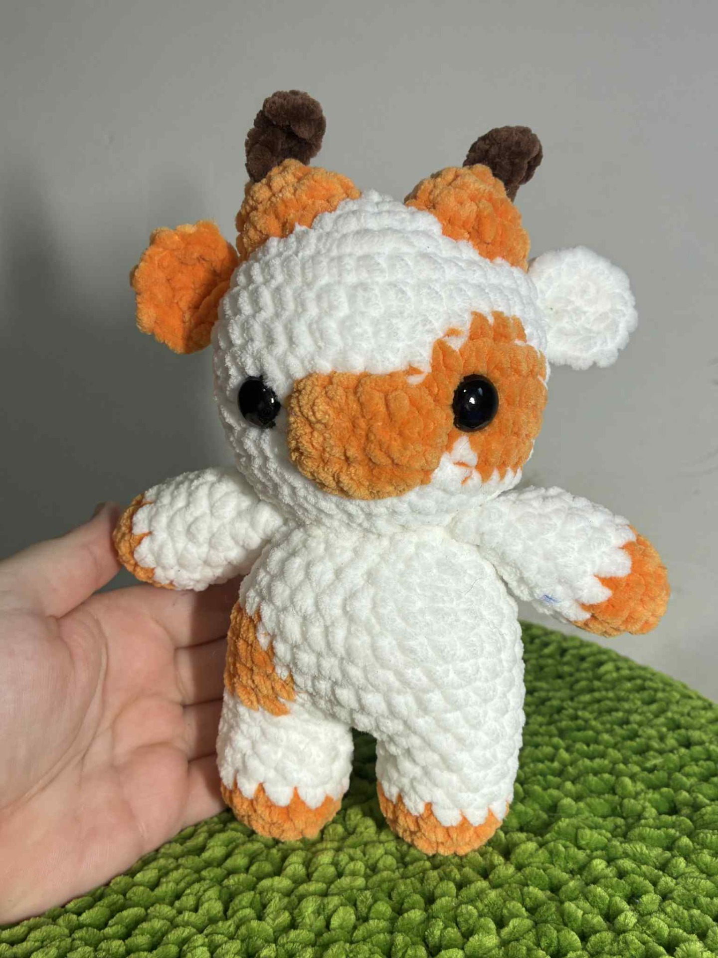 Dýňová kravička Malá, ale roztomilá. Pro milovníky podzimu, dýní a.. samozřejmě krav. Vyrobeno z žinylkové příze.- bezpečnostní oči- velikost: cca 19cm