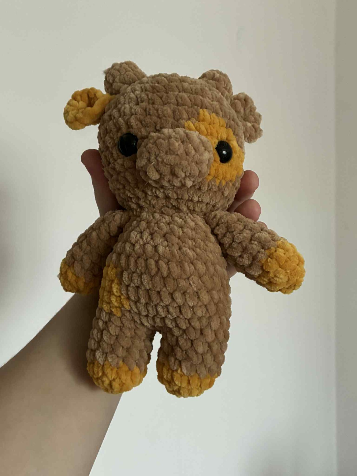 Ručně háčkovaná kravička z hebké žinylkové příze, která je připravena potěšit nové majitele.- bezpečnostní oči- velikost: cca 21cm
